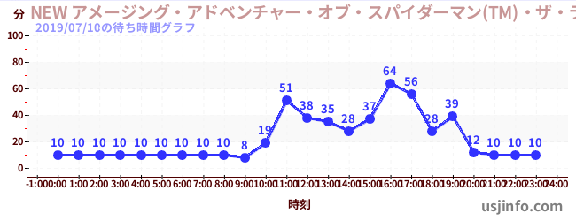 • NEW アメージング・アドベンチャー・オブ・スパイダーマン(TM)・ザ・ライド 4K3D$B$N(B2019年07月10日の待ち時間