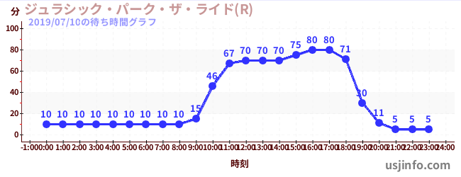 • ジュラシック・パーク・ザ・ライド(R)$B$N(B2019年07月10日の待ち時間