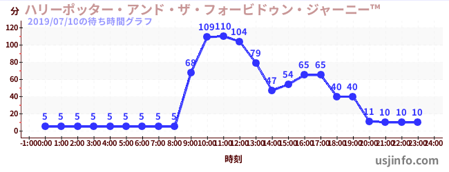 • ハリーポッター・アンド・ザ・フォービドゥン・ジャーニー™$B$N(B2019年07月10日の待ち時間