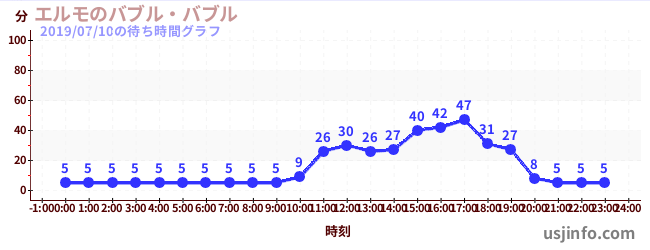 • エルモのバブル・バブル$B$N(B2019年07月10日の待ち時間