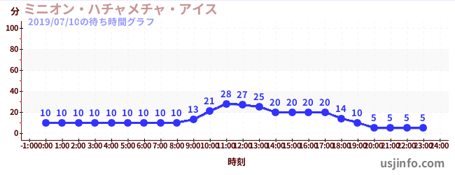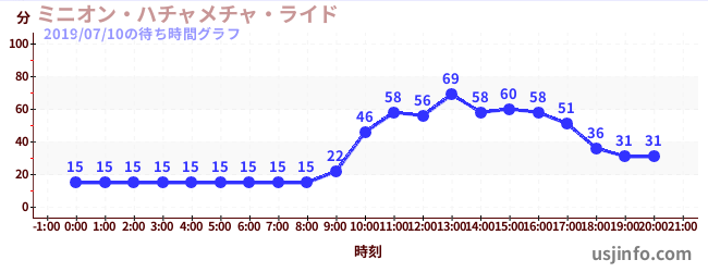 • ミニオン・ハチャメチャ・ライド$B$N(B2019年07月10日の待ち時間