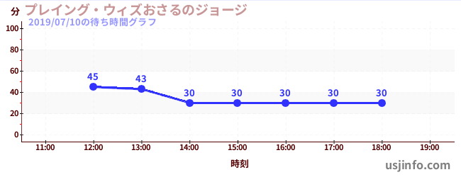 • プレイング・ウィズおさるのジョージ$B$N(B2019年07月10日の待ち時間