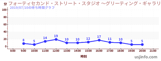 • フォーティセカンド・ストリート・スタジオ ~グリーティング・ギャラリー~ ピーナッツの仲間たち$B$N(B2019年07月10日の待ち時間