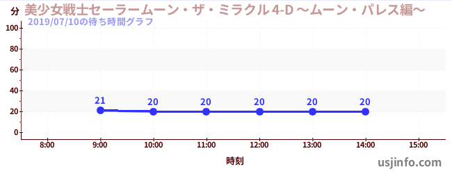 • 美少女戦士セーラームーン・ザ・ミラクル 4-D ~ムーン・パレス編~$B$N(B2019年07月10日の待ち時間