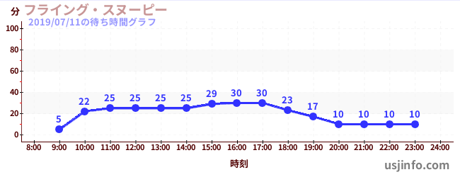 • フライング・スヌーピー$B$N(B2019年07月11日の待ち時間