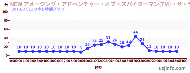 • NEW アメージング・アドベンチャー・オブ・スパイダーマン(TM)・ザ・ライド 4K3D$B$N(B2019年07月11日の待ち時間
