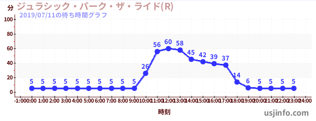 • ジュラシック・パーク・ザ・ライド(R)$B$N(B2019年07月11日の待ち時間