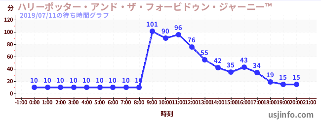 • ハリーポッター・アンド・ザ・フォービドゥン・ジャーニー™$B$N(B2019年07月11日の待ち時間