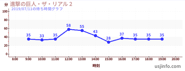 • 進撃の巨人・ザ・リアル 2$B$N(B2019年07月11日の待ち時間