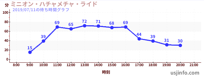 • ミニオン・ハチャメチャ・ライド$B$N(B2019年07月11日の待ち時間
