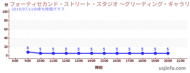 • フォーティセカンド・ストリート・スタジオ ~グリーティング・ギャラリー~ ピーナッツの仲間たち$B$N(B2019年07月11日の待ち時間