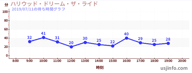 • ハリウッド・ドリーム・ザ・ライド$B$N(B2019年07月11日の待ち時間