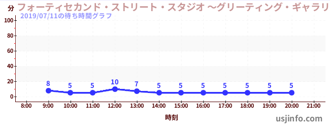 • フォーティセカンド・ストリート・スタジオ ~グリーティング・ギャラリー~ ミニオン$B$N(B2019年07月11日の待ち時間