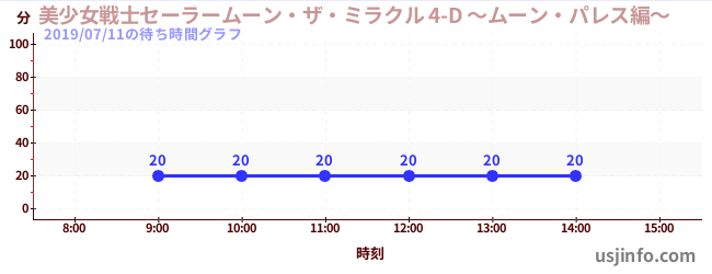 • 美少女戦士セーラームーン・ザ・ミラクル 4-D ~ムーン・パレス編~$B$N(B2019年07月11日の待ち時間