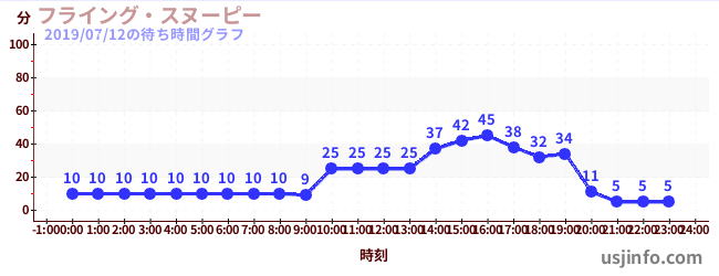 • フライング・スヌーピー$B$N(B2019年07月12日の待ち時間