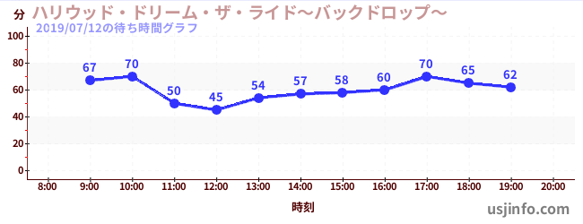 • ハリウッド・ドリーム・ザ・ライド〜バックドロップ〜$B$N(B2019年07月12日の待ち時間