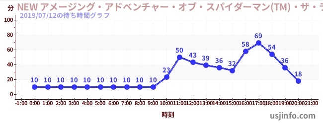 • NEW アメージング・アドベンチャー・オブ・スパイダーマン(TM)・ザ・ライド 4K3D$B$N(B2019年07月12日の待ち時間