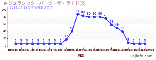 • ジュラシック・パーク・ザ・ライド(R)$B$N(B2019年07月12日の待ち時間