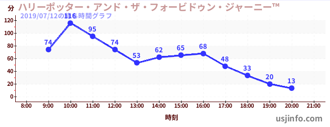 • ハリーポッター・アンド・ザ・フォービドゥン・ジャーニー™$B$N(B2019年07月12日の待ち時間