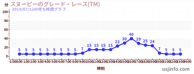 • スヌーピーのグレード・レース(TM)$B$N(B2019年07月12日の待ち時間