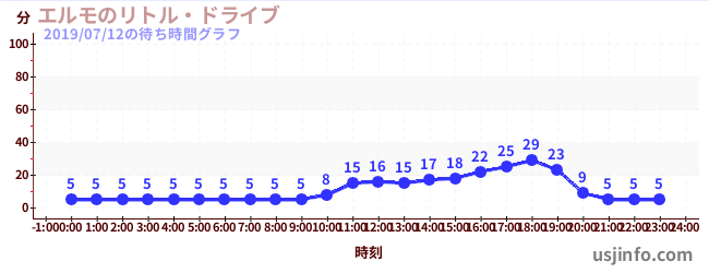 • エルモのリトル・ドライブ$B$N(B2019年07月12日の待ち時間