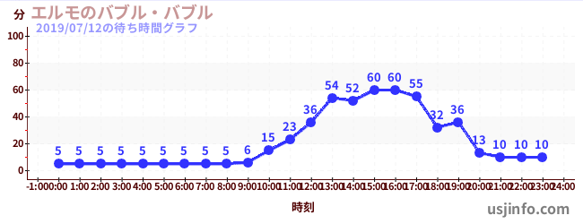 • エルモのバブル・バブル$B$N(B2019年07月12日の待ち時間