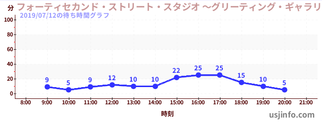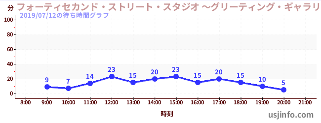 • フォーティセカンド・ストリート・スタジオ ~グリーティング・ギャラリー~ ピーナッツの仲間たち$B$N(B2019年07月12日の待ち時間