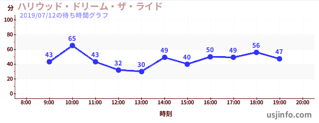 • ハリウッド・ドリーム・ザ・ライド$B$N(B2019年07月12日の待ち時間