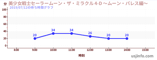 • 美少女戦士セーラームーン・ザ・ミラクル 4-D ~ムーン・パレス編~$B$N(B2019年07月12日の待ち時間