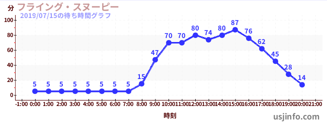 • フライング・スヌーピー$B$N(B2019年07月15日の待ち時間