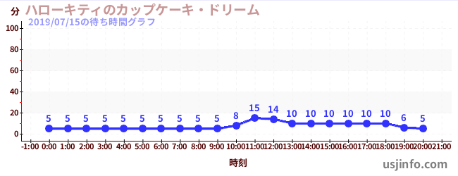 • ハローキティのカップケーキ・ドリーム$B$N(B2019年07月15日の待ち時間