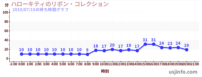 • ハローキティのリボン・コレクション$B$N(B2019年07月15日の待ち時間