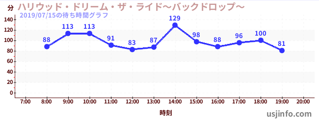 • ハリウッド・ドリーム・ザ・ライド〜バックドロップ〜$B$N(B2019年07月15日の待ち時間