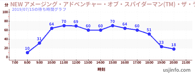 • NEW アメージング・アドベンチャー・オブ・スパイダーマン(TM)・ザ・ライド 4K3D$B$N(B2019年07月15日の待ち時間