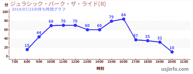 • ジュラシック・パーク・ザ・ライド(R)$B$N(B2019年07月15日の待ち時間