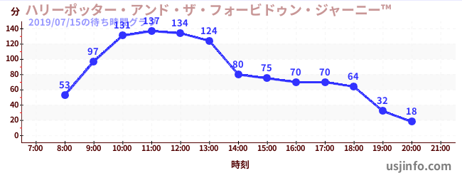 • ハリーポッター・アンド・ザ・フォービドゥン・ジャーニー™$B$N(B2019年07月15日の待ち時間