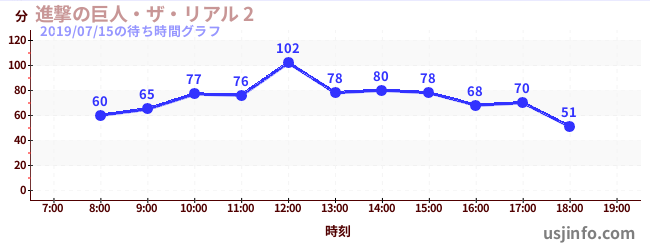 • 進撃の巨人・ザ・リアル 2$B$N(B2019年07月15日の待ち時間