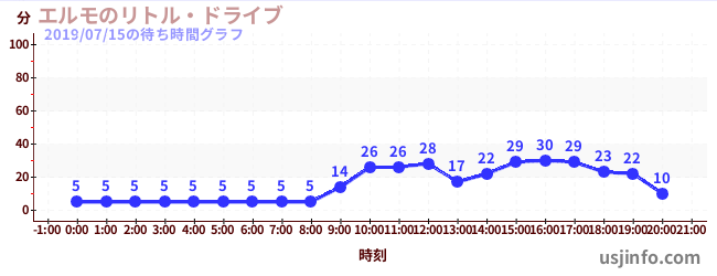 • エルモのリトル・ドライブ$B$N(B2019年07月15日の待ち時間