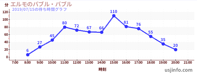 • エルモのバブル・バブル$B$N(B2019年07月15日の待ち時間