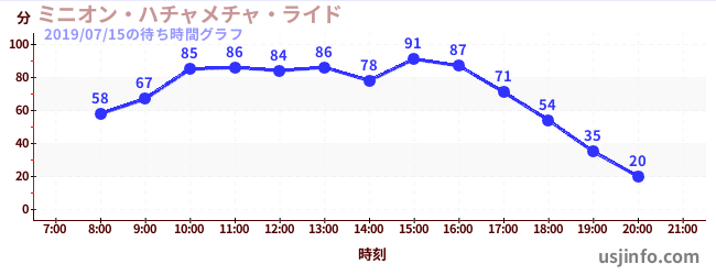 • ミニオン・ハチャメチャ・ライド$B$N(B2019年07月15日の待ち時間
