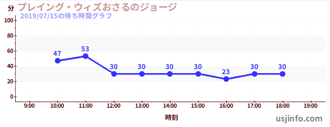 • プレイング・ウィズおさるのジョージ$B$N(B2019年07月15日の待ち時間
