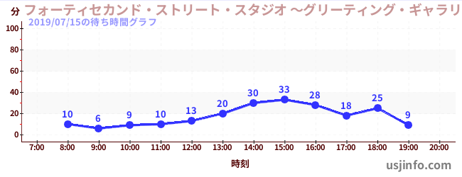 • フォーティセカンド・ストリート・スタジオ ~グリーティング・ギャラリー~ ミニオン$B$N(B2019年07月15日の待ち時間