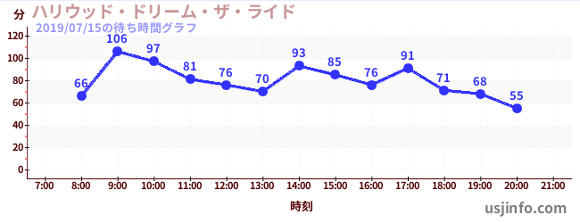 • ハリウッド・ドリーム・ザ・ライド$B$N(B2019年07月15日の待ち時間