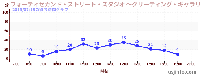 • フォーティセカンド・ストリート・スタジオ ~グリーティング・ギャラリー~ ピーナッツの仲間たち$B$N(B2019年07月15日の待ち時間