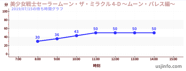 • 美少女戦士セーラームーン・ザ・ミラクル 4-D ~ムーン・パレス編~$B$N(B2019年07月15日の待ち時間