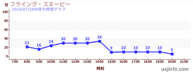 • フライング・スヌーピー$B$N(B2019年07月18日の待ち時間