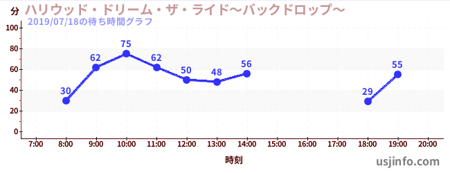 • ハリウッド・ドリーム・ザ・ライド〜バックドロップ〜$B$N(B2019年07月18日の待ち時間