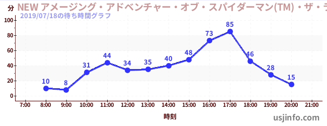 • NEW アメージング・アドベンチャー・オブ・スパイダーマン(TM)・ザ・ライド 4K3D$B$N(B2019年07月18日の待ち時間