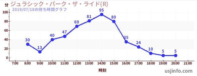 • ジュラシック・パーク・ザ・ライド(R)$B$N(B2019年07月18日の待ち時間