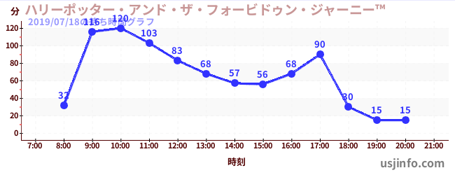 • ハリーポッター・アンド・ザ・フォービドゥン・ジャーニー™$B$N(B2019年07月18日の待ち時間